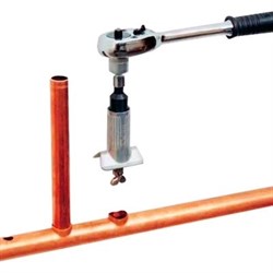Ручной труборасширитель REMS Hurrican H Сэт 12-14-16-18-22 предназначен для быстрого и качественного создания T-образных отводов для зажима без фитингов. Инструмент очень удобен в работе, имеет небольшой вес и компактный размер. Может использоваться с помощью одной руки. Есть возможность произвести отбортовку на смонтированном трубопроводе. Имеется сверлильная головка, которая обеспечивает сверление без керна. Есть возможность установить упор под размер отвода. Фиксатор для закрепления держателя на трубе с помощью обычной трещотки либо торцевого ключа на 11 или гаечного ключа.