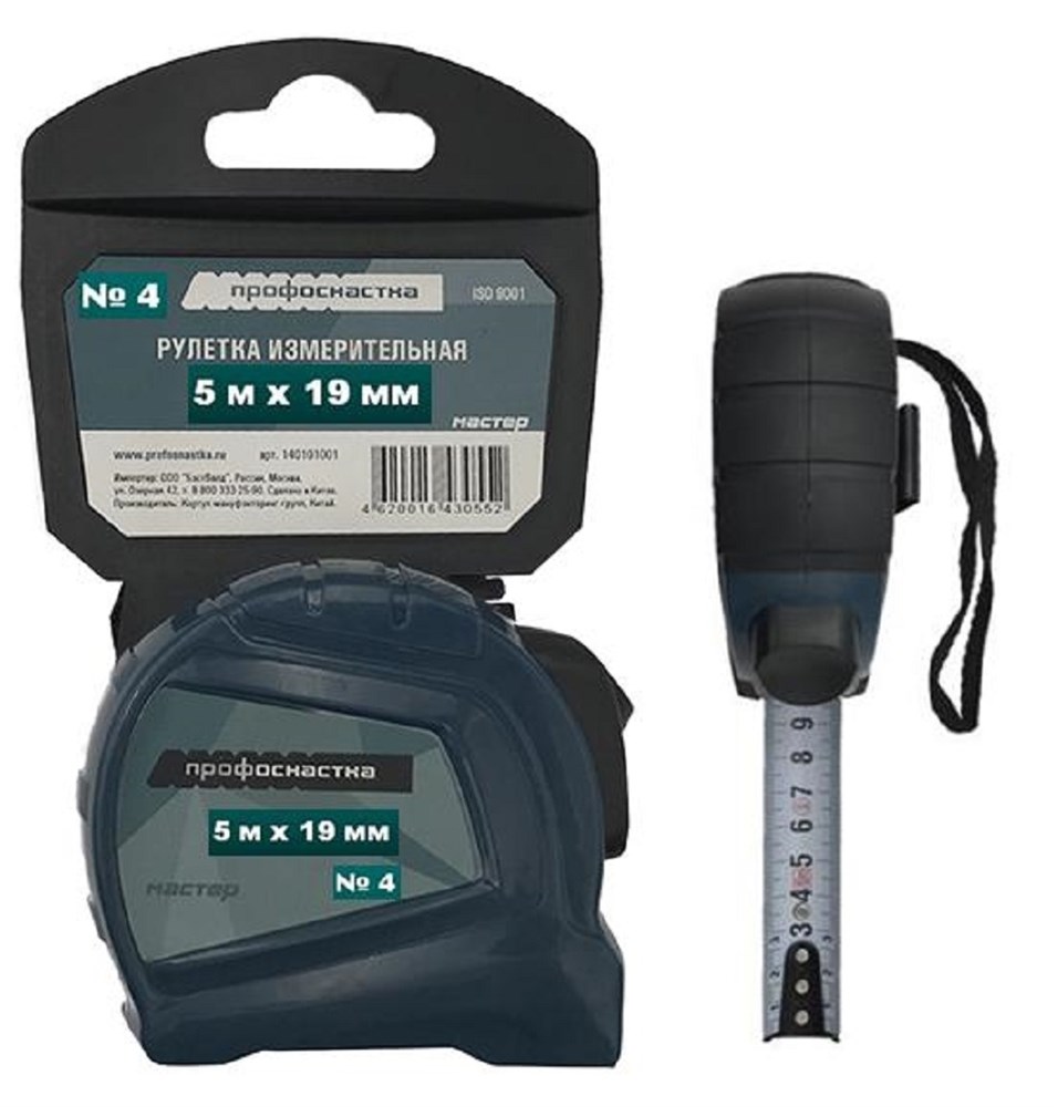Рулетка измерительная ПрофОснастка Мастер №4 5 м 19 мм 140101002 — надёжная измерительная рулетка для ежедневной работы в строительстве и монтажe. Стальная измерительная лента шириной 19 мм имеет защитное покрытие, устойчивое к истиранию и коррозии. Прочный корпус обеспечивает долговечность и удобство использования. Надёжный фиксатор ленты позволяет точно зафиксировать нужное значение. Подходит для строительных, монтажных и отделочных работ. Рулетка ПрофОснастка станет надёжным инструментом в работе.