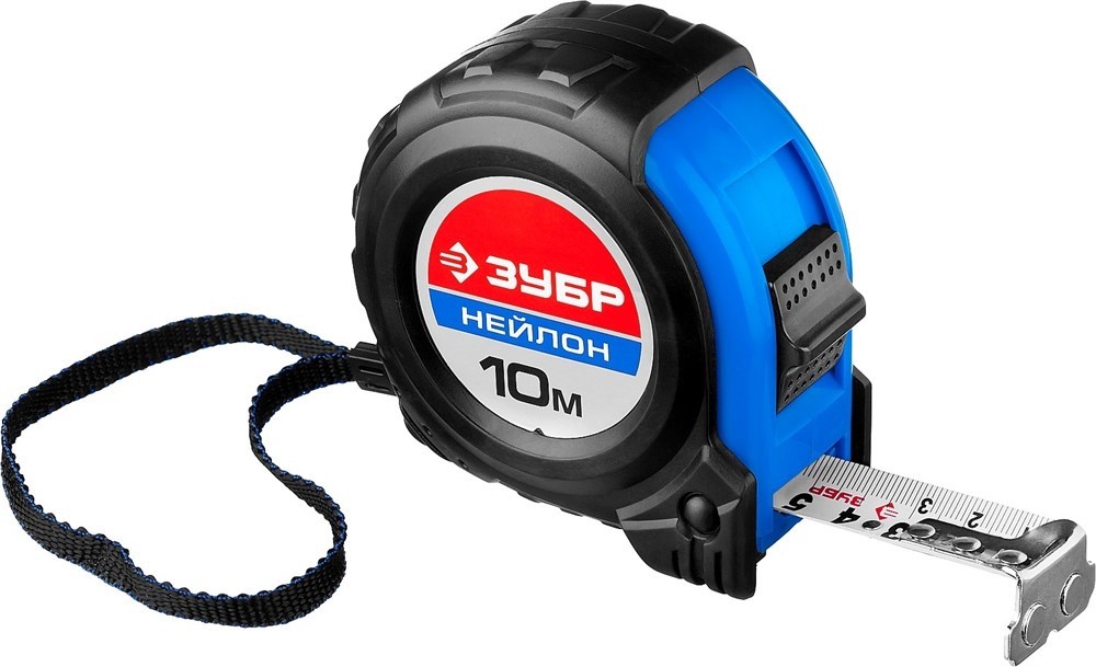 Рулетка измерительная Зубр Эксперт Нейлон 10 м 25 мм 34056-10-25_z01 — надёжная измерительная рулетка для ежедневной работы в строительстве и монтажe. Стальная измерительная лента шириной 25 мм имеет защитное покрытие, устойчивое к истиранию и коррозии. Прочный корпус обеспечивает долговечность и удобство использования. Надёжный фиксатор ленты позволяет точно зафиксировать нужное значение. Подходит для строительных, монтажных и отделочных работ. Рулетка Зубр станет надёжным инструментом в работе.