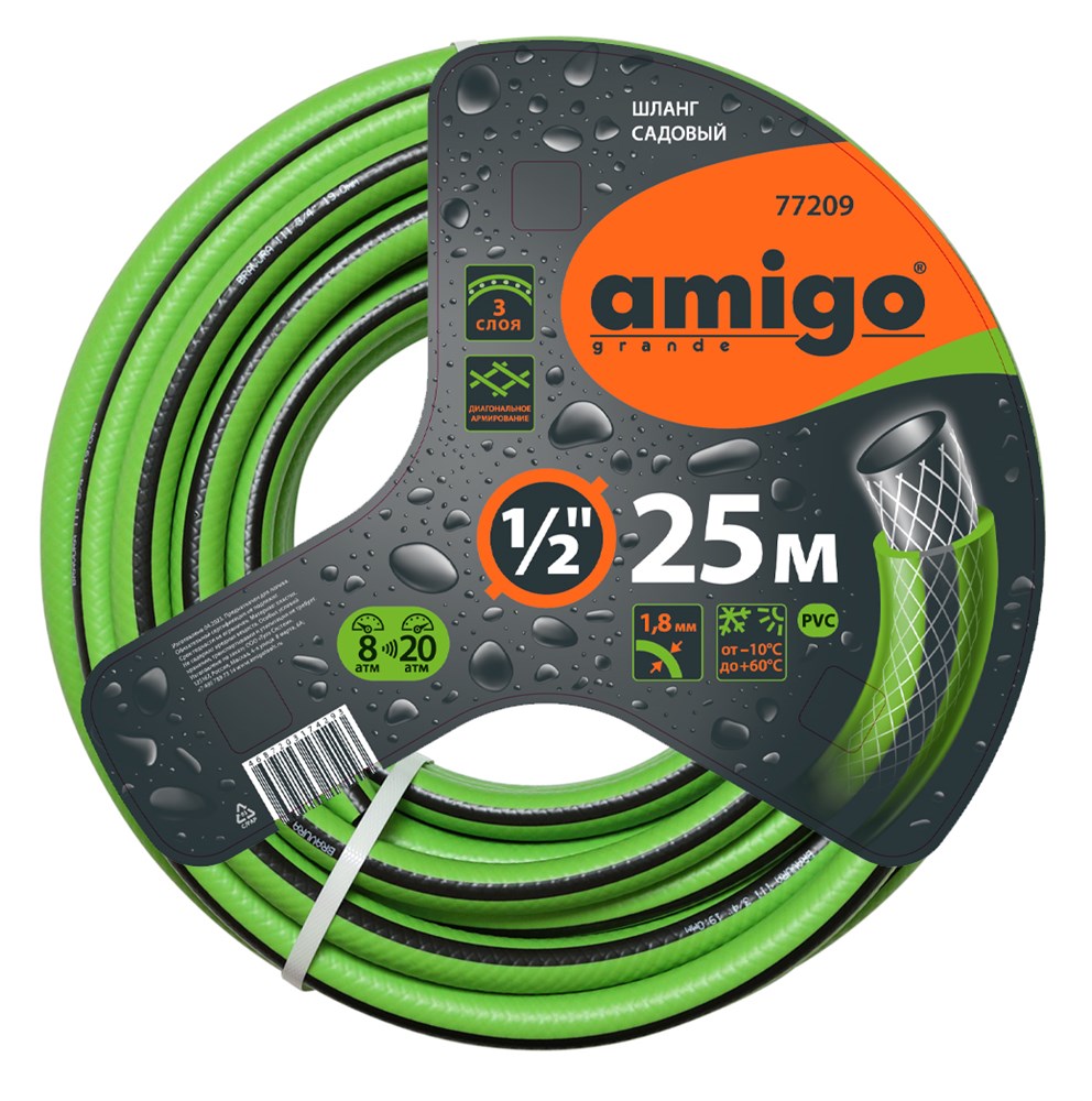 Шланг Amigo 77209 1/2", 25м, садовый трехслойный | 1/2 | 25 | 3 | |