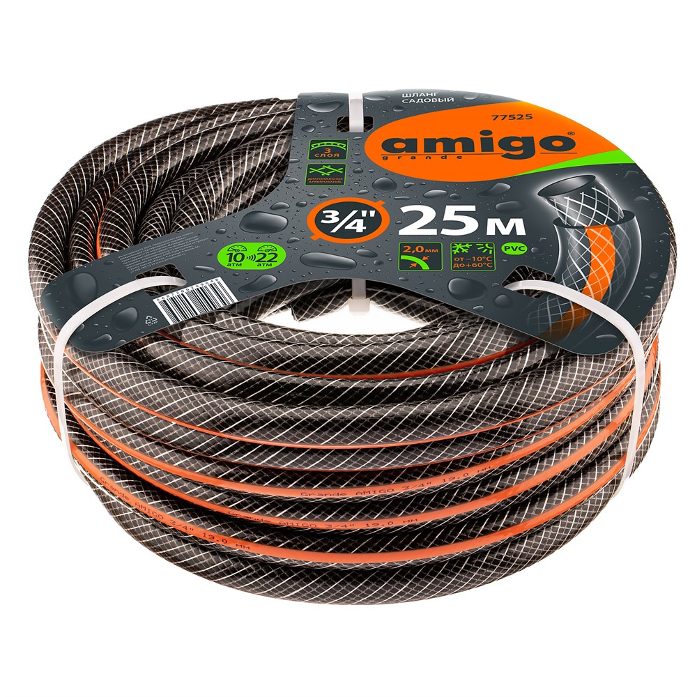 Шланг Amigo 77169 3/4", 25м, садовый трехслойный | 3/4 | 25 | 3 | |