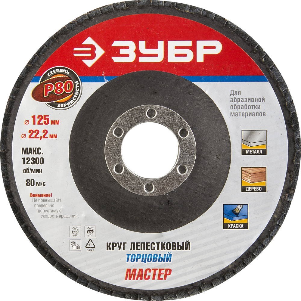 Шлифовальный круг ЗУБР "Мастер" лепестковый, торцевой,, P80, 125х22,2мм 36591-125-80