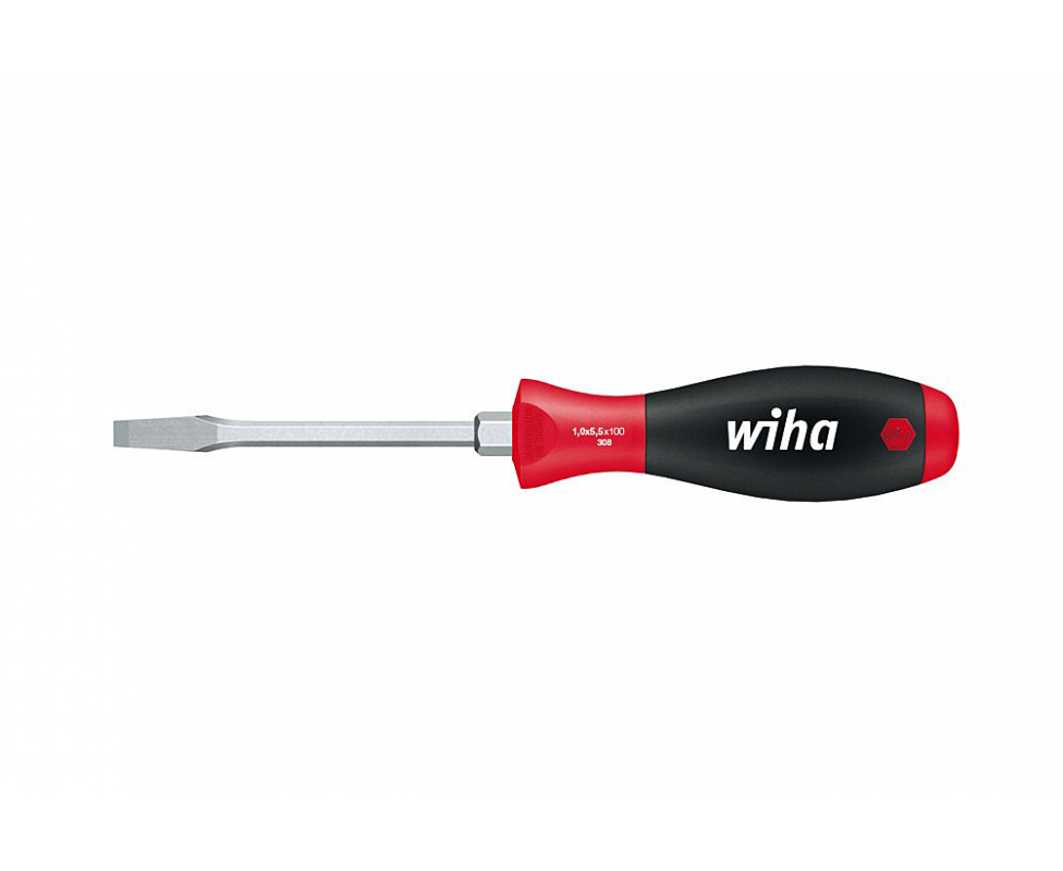 Шлицевая отвертка Wiha SoftFinish 308SF SL 5,5x100 00733 - с шестигранным жалом и шестигранником под гаечный ключ поможет там, где требуется усилие в работе с крепежами.