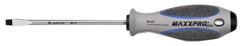 Шлицевая отвертка Witte Maxxpro Plus SL5,5 125 мм 63106 предназначена для работ в масляных и влажных средах. Рукоятка отвёртки WITTE MAXXPRO Plus изготовлена с применением запатентованного микрофазерного покрытия, которое обеспечивает защиту от проскальзывания руки. Инструмент MAXXPRO Plus имеет неповторимую эргономику и осуществляет чрезвычайно высокую передачу усилия в сложных для работы условиях. Специальный контур рукоятки для отличной передачи силы руки (высокая сила нажатия). Трёхгранная форма ручки соответствует идеальному углу вращения руки (120°). Мягкий материал на рёбрах рукоятки удобен для вращения отвёртки. Зона вращения руки из мягкого материала делает работу приятной и более безопасной. Металлический стержень инструмента выполнен из специальной высоколегированной стали с матовым хромированием и с долговечной маркировкой. Чёрный закалённый рабочий наконечник обеспечивает максимальную точность. Запатентованное микрофазерное покрытие рукоятки предотвращает проскальзывание руки. Оснащенные запатентованным микрофазерным покрытием отвёртки MAXXPRO Plus разработаны специально для работ в масляных или влажных средах. Уникальная эргономика и высокий крутящий момент делает их лучшими при работе в тяжёлых условиях.
