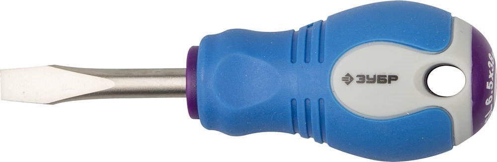 Шлицевая отвертка ЗУБР "Профи" короткая, SL, 6,5x38мм 25251-6.5-038 - это прочный надежный инструмент для профессиональных работ. Высокий коэффициент крутящего момента препятствует излому жала при высоких нагрузках. Эргономичная трехкомпонентная рукоятка разработана с использованием последних технологий, обеспечивает удобный захват и эффективное вращение отвертки. Стержень и жало отвертки изготовлены из высококачественной хромованадиевой стали. Специальная закалка по особой технологии. Цветовая индикация типа шлица. Эргономичная трехкомпонентная специально сконструированная рукоятка оптимальной формы обеспечивает как передачу высокого крутящего момента от руки к профилю крепежа, так и быстрое выполнение работ, не требующих больших усилий.