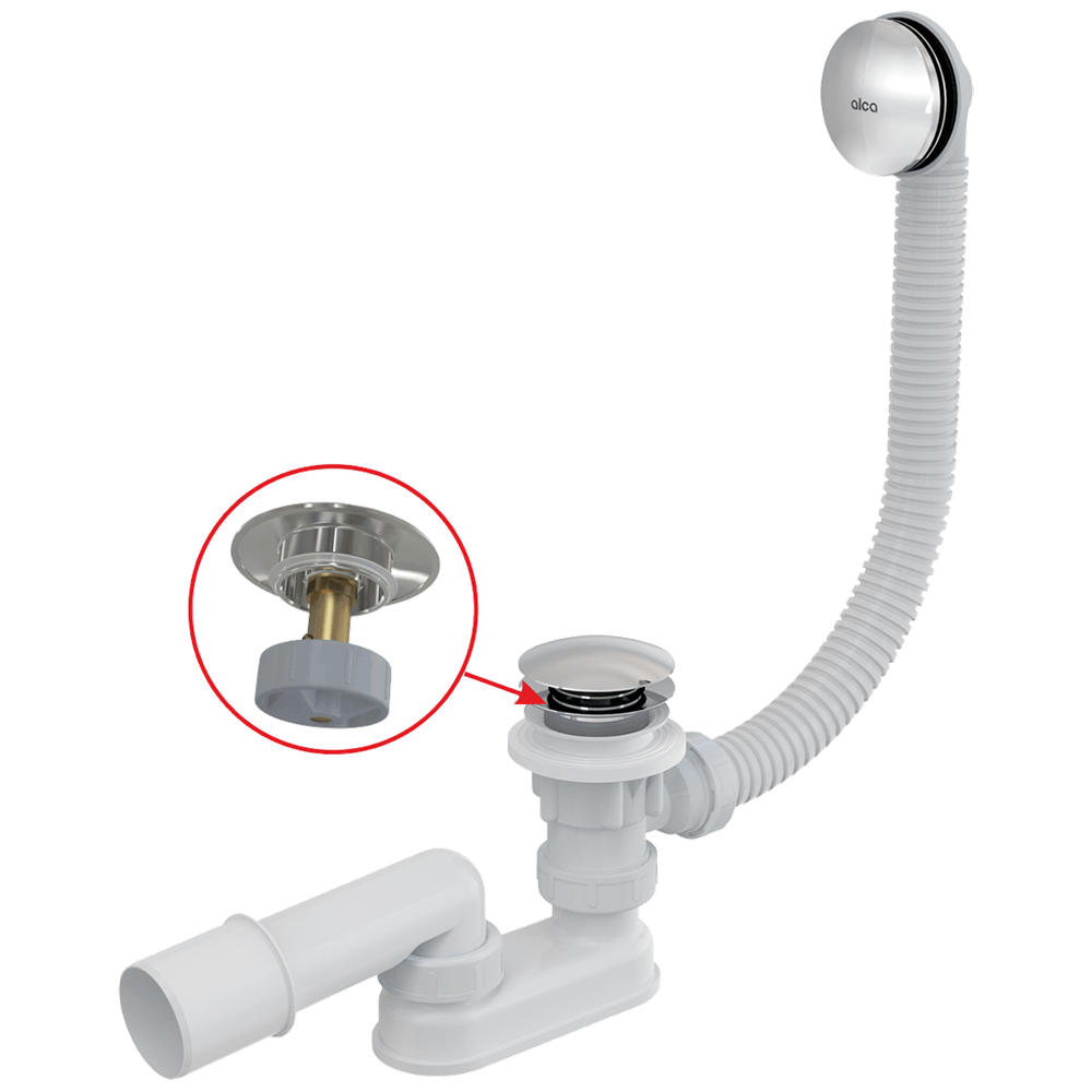 Сифон для ванны AlcaPlast A504CKM CLICK/CLACK, металл используется для слива воды из ванны в канализационный сток.