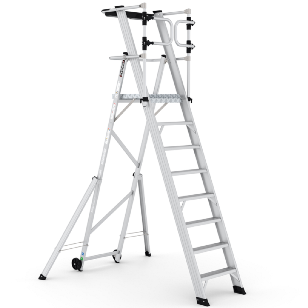Складная лестница-платформа CASGAN KEY-PRO 7+1 ступеней - надежный и удобный инструмент для выполнения работ на высоте. Он идеально подходит как для профессиональных строителей, так и для домашних мастеров.