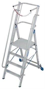 Стремянка Krause Stabilo с большой платформой и дугой безопасности 4 ступени 127488 - мобильная стремянка с большой комфортабельной площадкой и круговым ограждением.