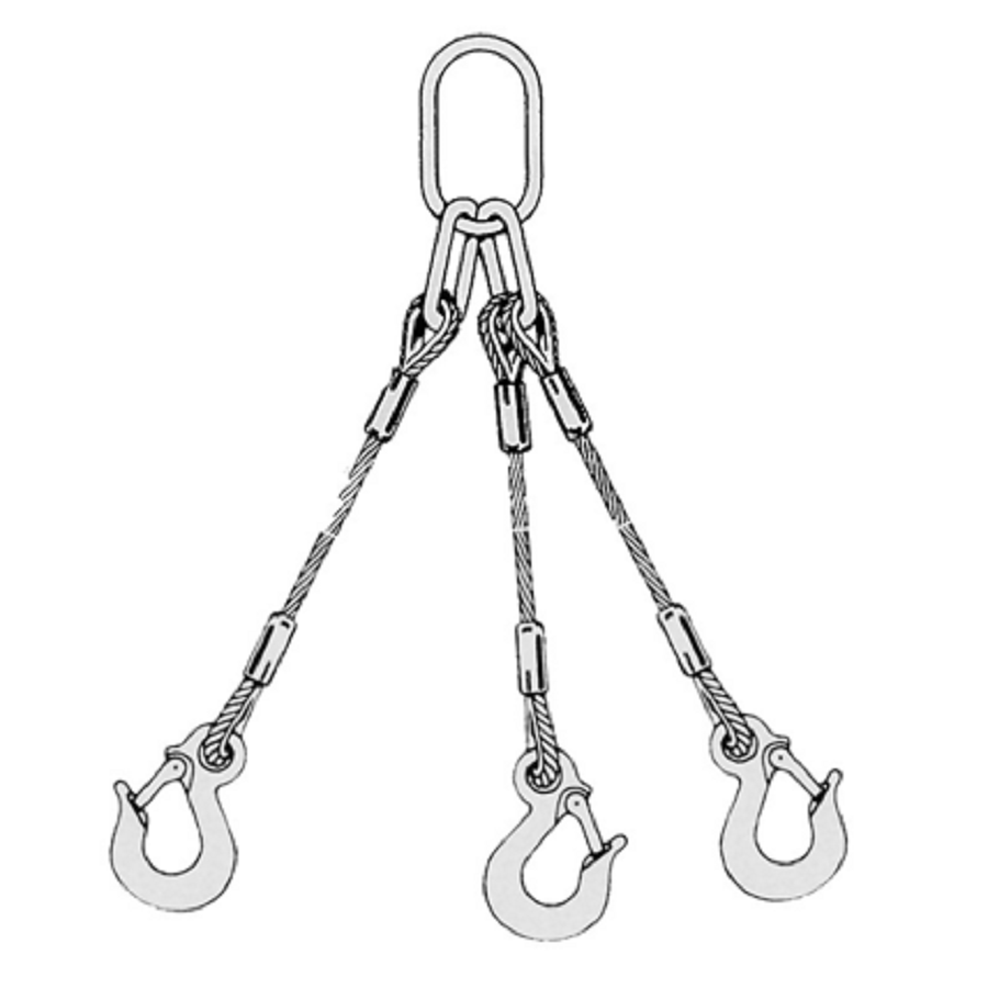 Строп канатный TOR 3СК г/п 1,0 т 1,0 м (опрессовка) крюки SALK чаще всего применяется при работе с габаритными грузами для крепления в трёх точках опоры. Обжим петель произведен методом опрессовки. В петлю может быть установлен коуш для защиты от излома и стирания.