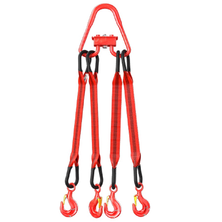 Строп текстильный TOR 4СТ 20,0 т 3,8 м 300 мм - приспособление для подъема, перемещения и удержания различных грузов. Конструктивно он состоит из стального звена, к которому прикреплено 4 ветви из прочного полиэстера. На конце каждой находится крюк или иной захват, который непосредственно удерживает груз.