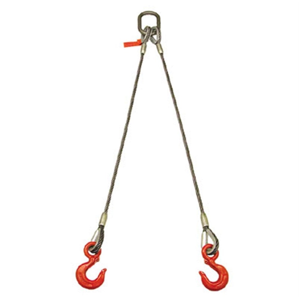 Канатный строп TOR 2СК г/п 10,0 т 4,5 м 1007283 чаще всего применяется при работе с длинными грузами для крепления в двух точках опоры. Обжим петель может происходить как с помощью зажима, так и методом заплетки. В петлю может быть установлен коуш для защиты от излома и стирания.
