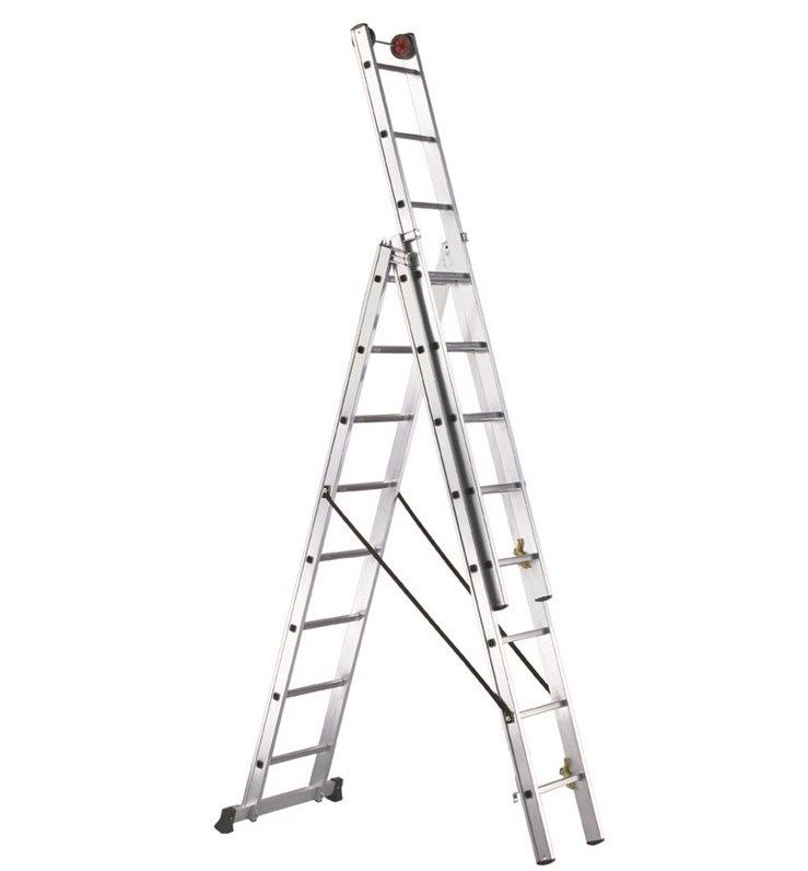 Трёхсекционная алюминиевая лестница-стремянка Svelt Еuro E3 3x14 предназначена для профессионального использования на максимальной высоте 10,25 м.