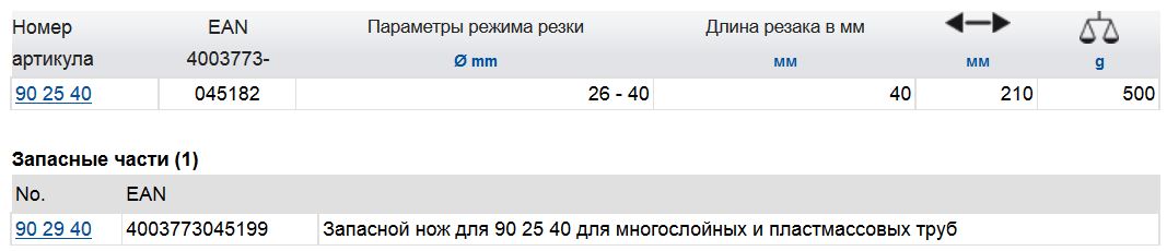 - Для резания толстостенных пластмассовых и многослойных труб Ø 26,0 -40,0 мм