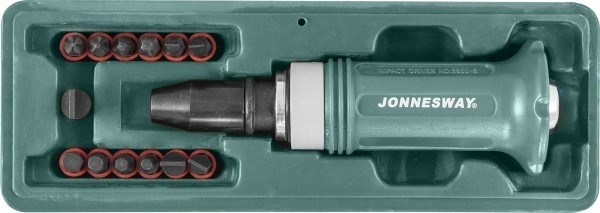 Ударная отвертка Jonnesway реверсивная SL/PH/HEX 14 предметов AG010138