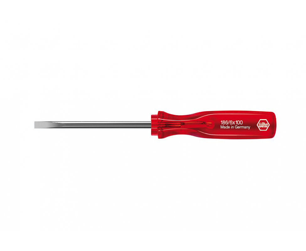 Универсальная шлицевая отвертка Wiha Classic 186 SL 5,5x100 00222 отлично подходит для повседневных работ в различных средах. Используется для работы с винтами, находящимися в узких отверстиях.