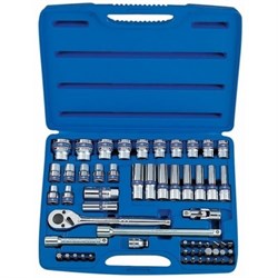 Универсальный набор инструмента King Tony, 1/2", 5/16"DR, 58 предметов 4558MR01 используют в работе как профессиональные мастера на станциях технического обслуживания автомобилей (СТОА), так и автолюбители для ремонта своей автомашины либо при домашнем ремонте. Включает широкий ряд стандартных и глубоких головок, назначение которых – работа с торцевым крепежом. Глубокие головки незаменимы в работе со шпильками, с крепежом, находящимся в углублении, а вставки (биты) разной конфигурации, также входящие в комплектацию набора, позволят работать с крепежом с внутренним профилем. Изготовленный из прочного пластика кейс устойчив к ударам, удобен для хранения, а также защает инструменты от воздействия влаги или утери.