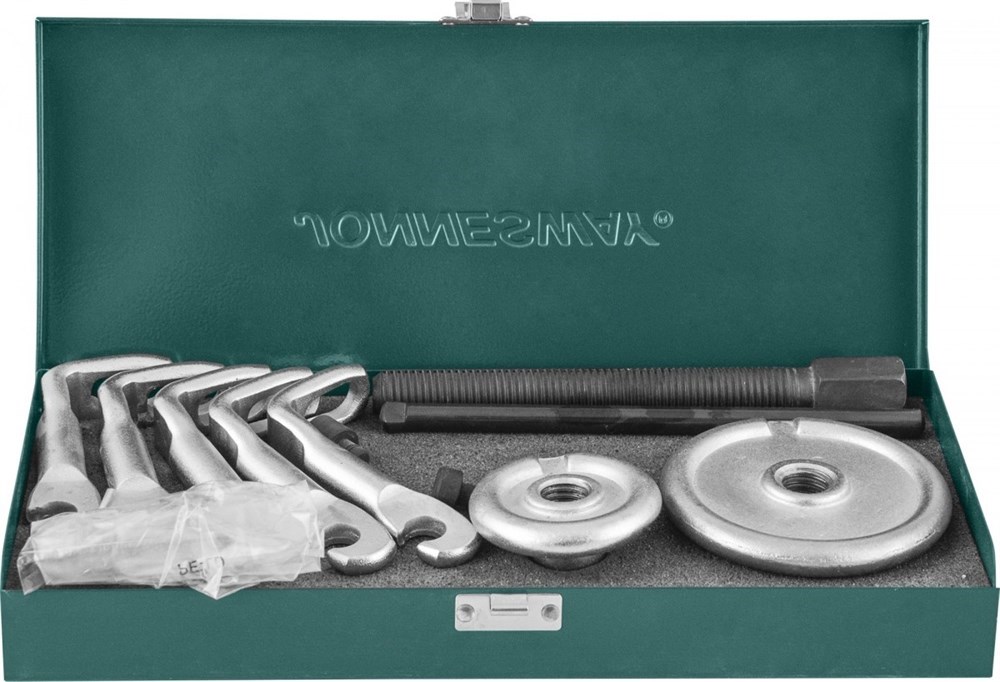 Универсальный съемник ступицы Jonnesway AE310013 применяется для демонтажа ступиц автомобилей с помощью ходового винта, в диапазоне PCD 90-180 мм.