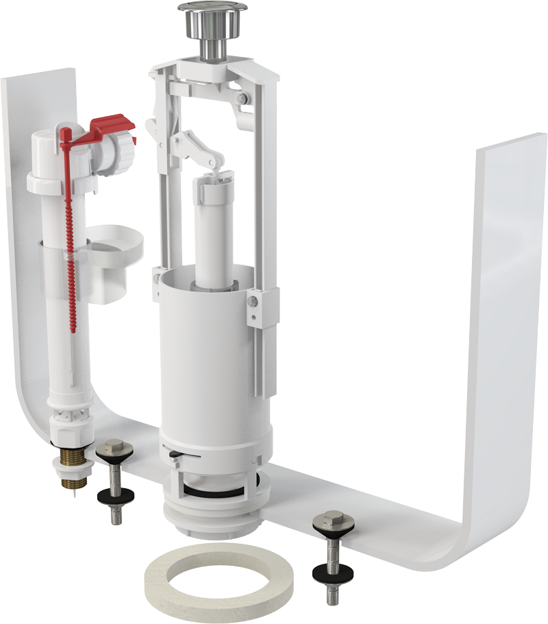 - Конструкция позволяет регулировать высоту механизма в зависимости от высоты бачка.
