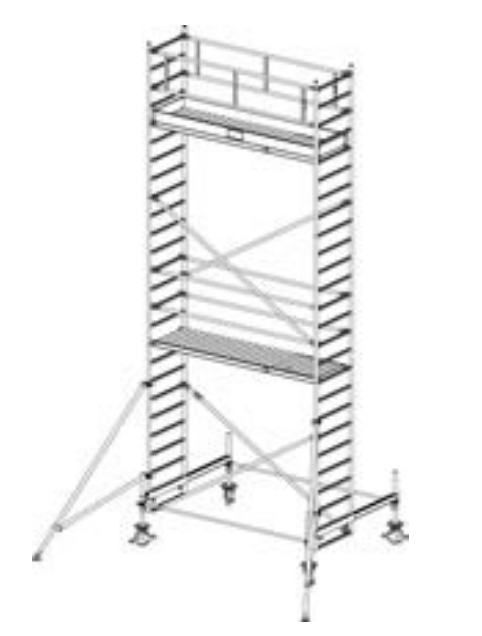 - Блокировка колес обеспечивает безопасную фиксацию вышки на месте