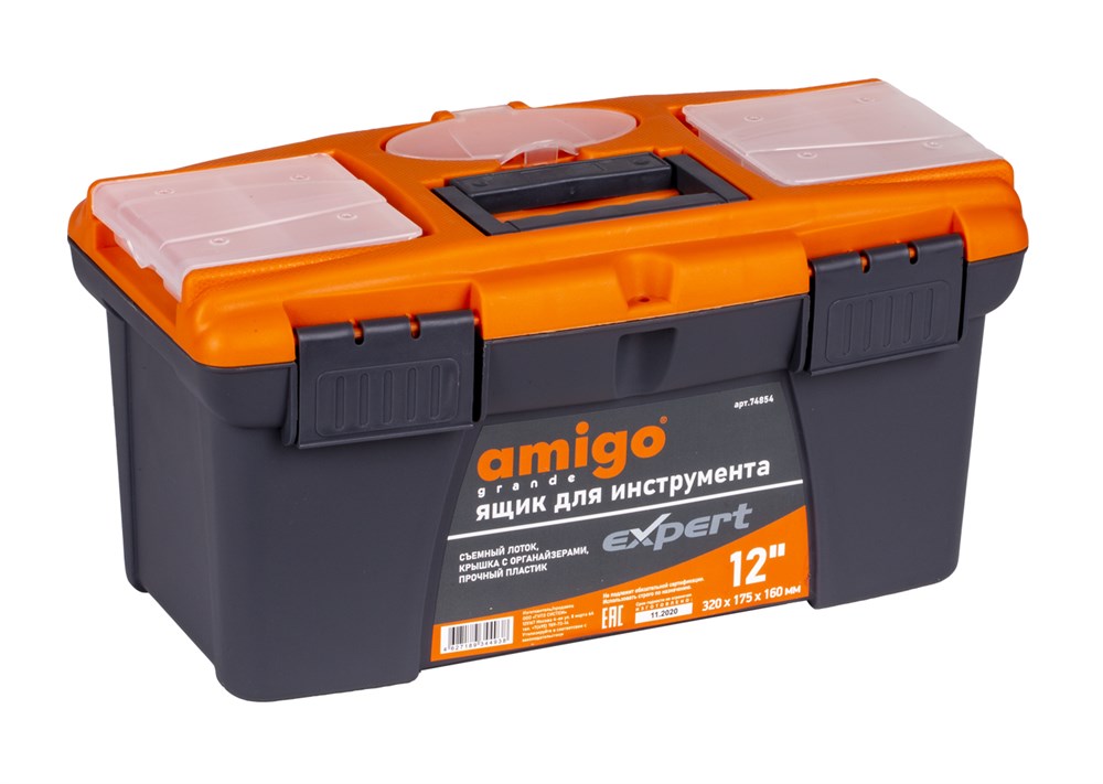 Ящик для инструмента пластиковый Amigo 12" (32х17,5х16 см) 74854 | 12 | 320x175x160 | пластиковые защелки | ударопрочный пропилен | |