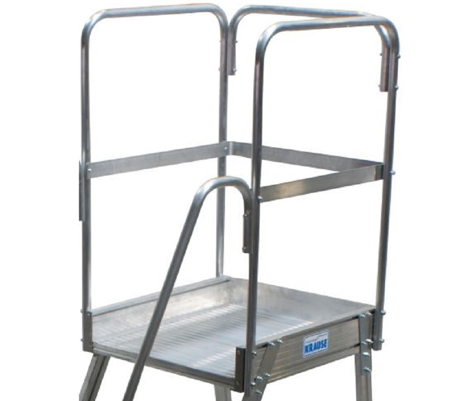 Защитное ограждение лестницы с площадкой Krause RR0011 - трёхстороннее ограждение площадки высотой 1,10 м с защитной планкой на уровне колен и плинтусом.
