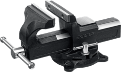 - Поворотное основание позволяет перемещать корпус тисков в горизонтально плоскости и фиксировать его в необходимом положение.